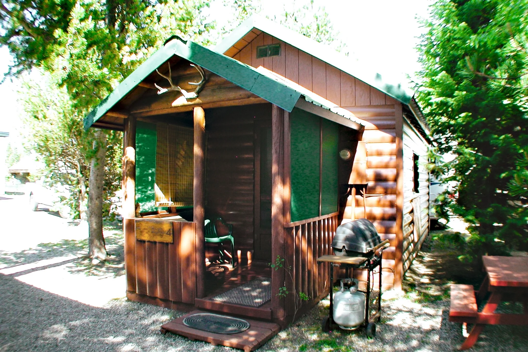 Enjoy this furnished two-bedroom cabin with two double/full beds in West Yellowstone with the perfect location that is private, quiet, and filled with all the comforts of home. There is only a curtain between the two bedrooms. There is no kitchen but we have a coffee maker, microwave oven and a dorm refrigerator. Electrical heat and window air conditioner available.